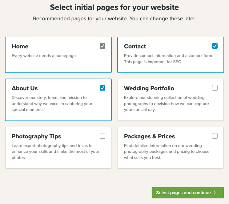 Trin 2: Vælg dine sider