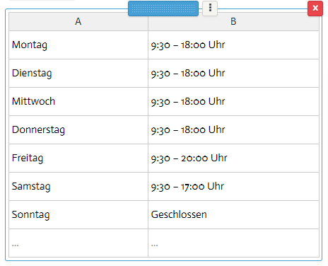 ⚠ Fazit: Mit dem Tabellen-Element werden deine Öffnungszeiten wie vorgesehen auf allen Geräten, einschließlich Computern, angezeigt: