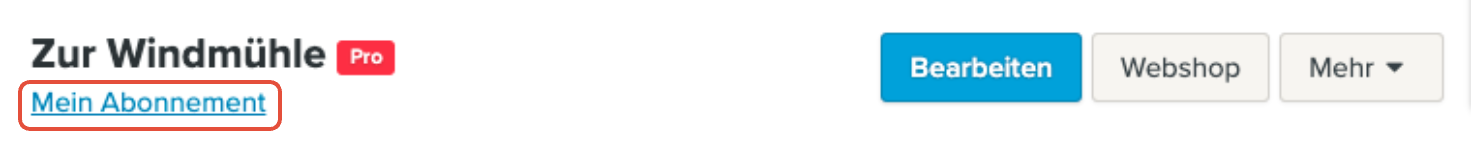 Du bist jetzt auf der Seite Meine Websites. Hier klickst du auf den Link Mein Abonnement.