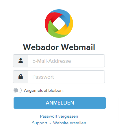 Melde dich über webmail.webador.de an. Melde dich hier mit der E-Mail-Adresse deiner Mailbox und dem von dir gewählten Passwort an.
