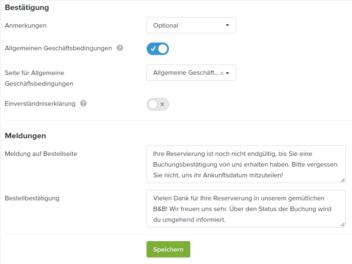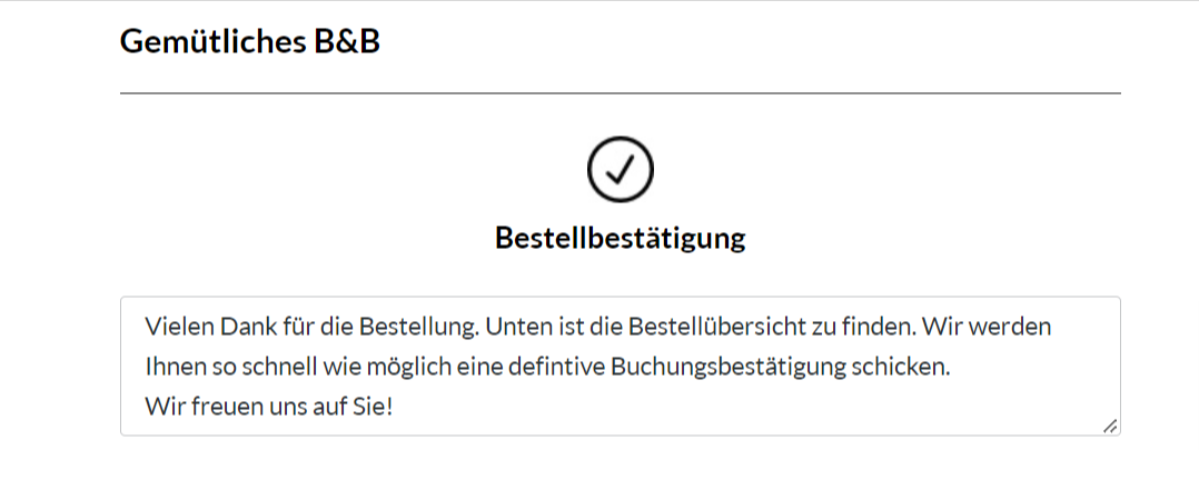 In unserem Beispiel haben wir das "Bestellformular" auf diese Weise eingerichtet und betont, dass die Buchung noch nicht endgültig ist und du die Buchungsbedingungen lesen solltest.