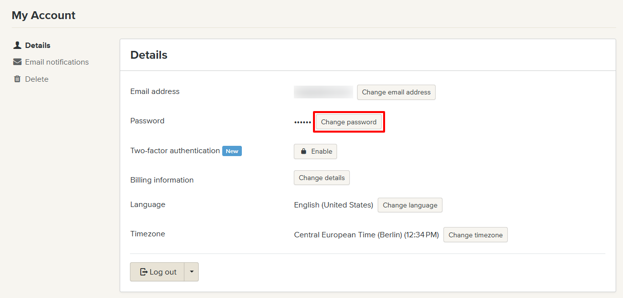 In your account settings, click Change password.