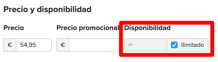 - Existencias limitadas: Introduce el número de productos que tienes en stock en el campo de número.