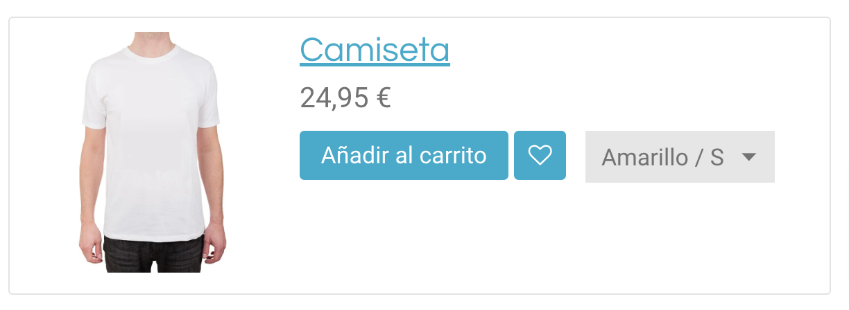 Ahora se muestra un pequeño icono de corazón junto a tus productos. Tus clientes pueden agregar el producto a la lista de deseos a traves de este botón.