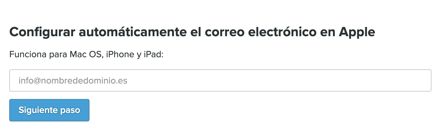 En la página de configuración del correo electrónico, podrás elegir ver las instrucciones para iPhone/iPad o MacOS (la primera debería estar seleccionada por defecto). Sigue los pasos de esta página para configurar tu correo electrónico.
