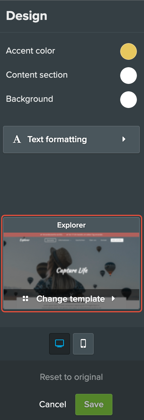 Valitse haluamasi ulkoasu nähdäksesi esikatselun siitä, miltä verkkosivustosi näyttää tämän uuden ulkoasun kanssa. Voit myös muokata valittua ulkoasua heti ja muuttaa värejä, leveyttä ja tekstin muotoilua.