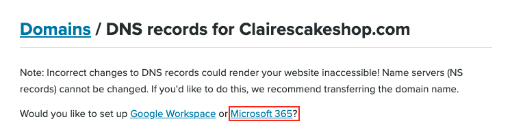 Napsauta DNS-tietueet-sivun yläosassa linkkiä Microsoft 365.