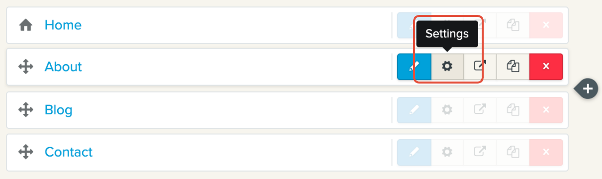 Napsauta sen sivun vieressä olevaa hammasratas-kuvaketta, jota haluat muokata.
