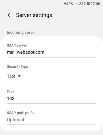 - IMAP-palvelin: mail.webador.com (EI verkkotunnuksesi).