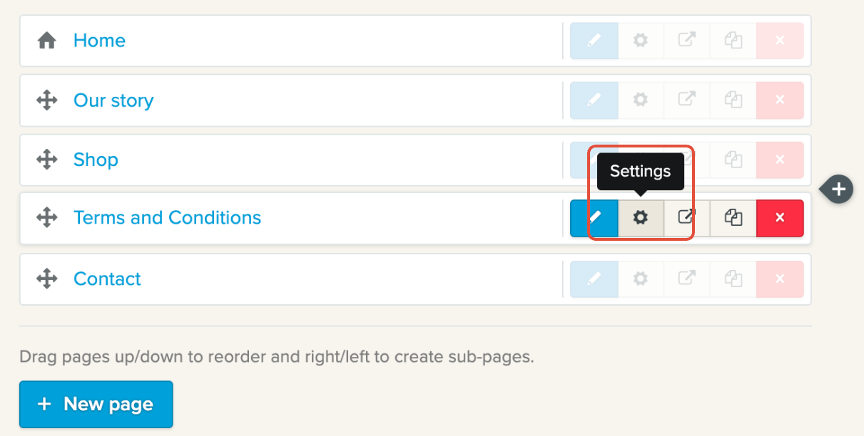 Napsauta sen sivun vieressä olevaa settings (hammasratas) -kuvaketta, jonka haluat tehdä näkymättömäksi.