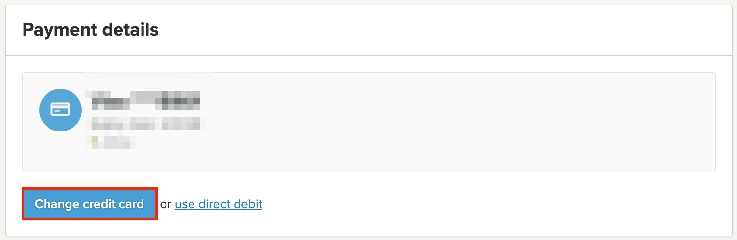 Klikkaa Vaihda pankkitili / Vaihda luottokortti -painiketta, syötä uudet tiedot ja klikkaa Tallenna.