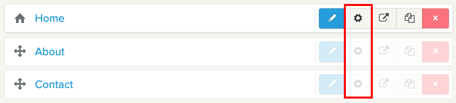 Napsauta muokattavan sivun vieressä olevaa asetukset (ratas) -kuvaketta.