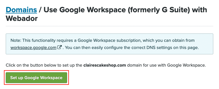 Klikkaa vihreää Määritä Google Workspace -painiketta.