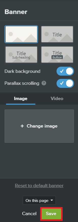 Vasemmalla avautuvassa banneriasetusten valikossa napsauta + Vaihda kuva -painiketta.