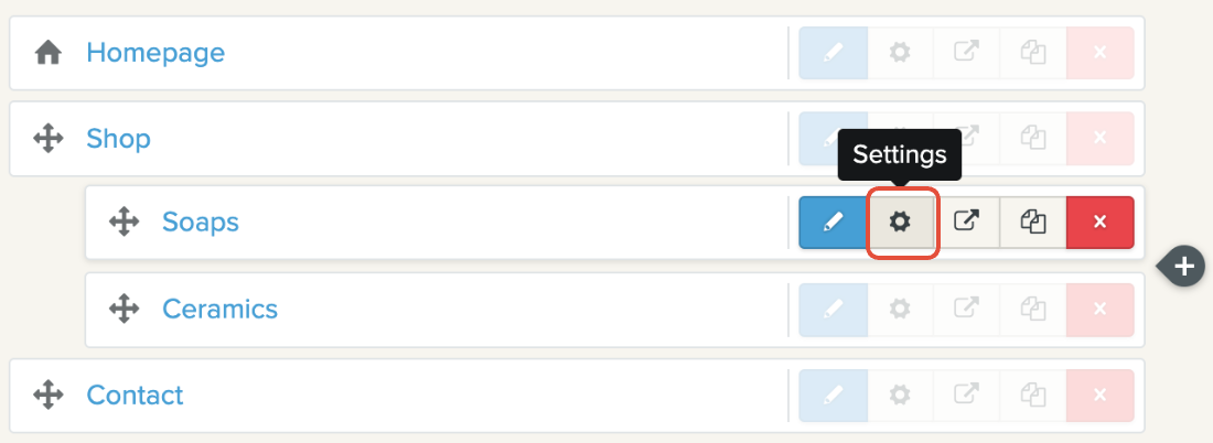 Napsauta sen sivun vieressä olevaa asetukset (ratas) kuvaketta , jota haluat muokata.