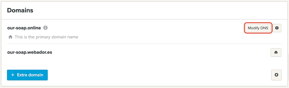 Napsauta tilaus-sivulla Hallitse verkkotunnuksia ja napsauta sitten Muokkaa DNS.