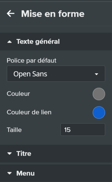 Ou modifier la couleur, le style et le format des textes selon leur sous-partie :