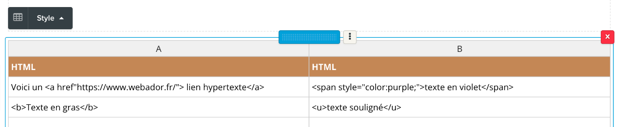 Avancé : Utilisation de l'HTML dans votre tableau