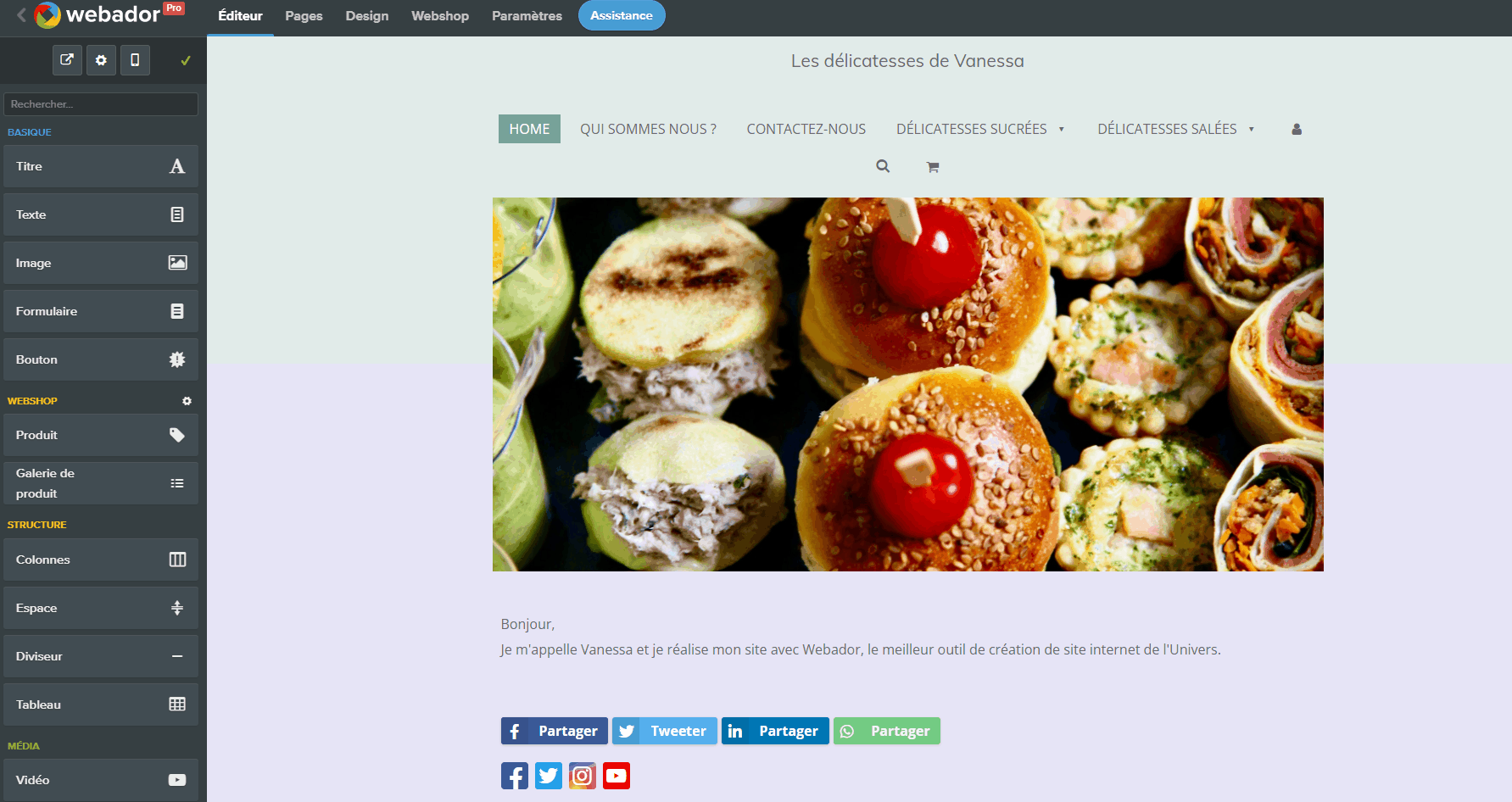 Dans ces colonnes, vous pouvez maintenant faire glisser les éléments de contenu Webador, tels que les textes, images, boutons, etc.