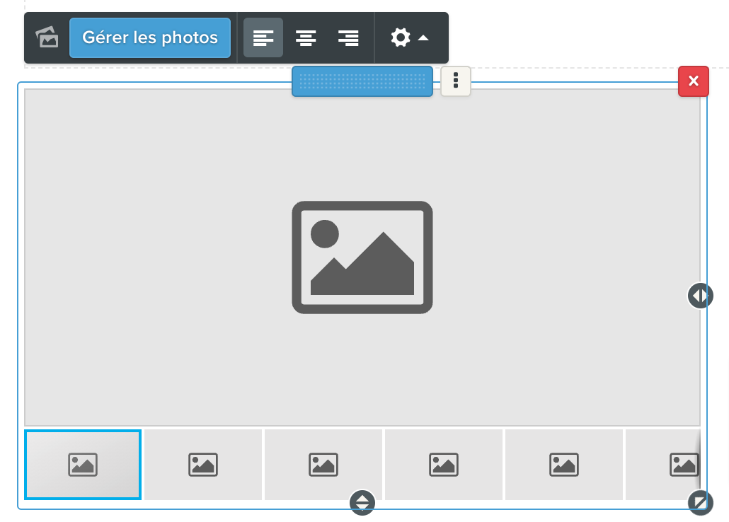 - Vignette : Les vignettes du diaporama peuvent être placées au-dessus ou dessous, être remplacées par des points ou être complètement désactivées.