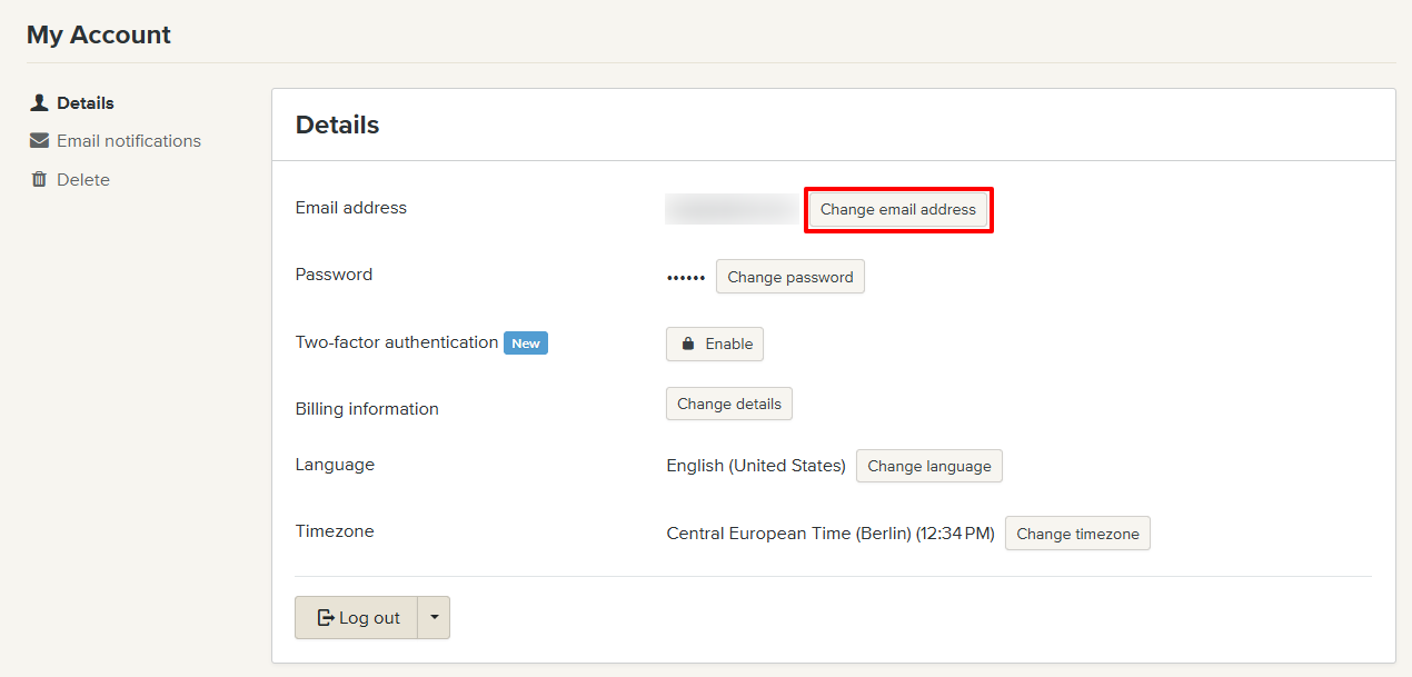 Nelle impostazioni del tuo account, clicca su Cambia indirizzo email.