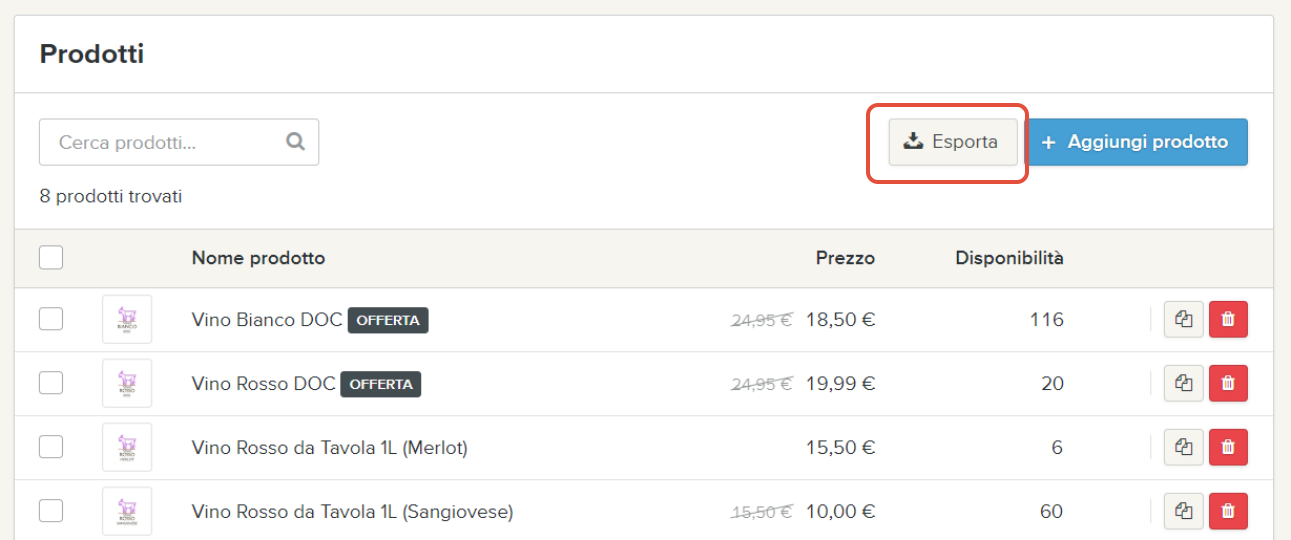 Potrai ora scegliere di esportare i tuoi prodotti come "Download" oppure come "Feed online".