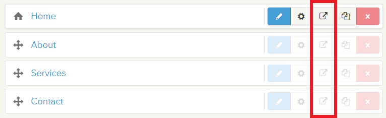 Du kan se nettsiden din på flere måter. Gjennom Redaktør kan du se hele nettsiden på nettet, eller du kan velge å bare vise en bestemt side.