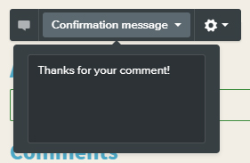 Klikk på elementet for å se det grå verktøylinjen, og klikk på Bekreftelsesmelding for å angi hva besøkende skal se når de legger igjen en kommentar.