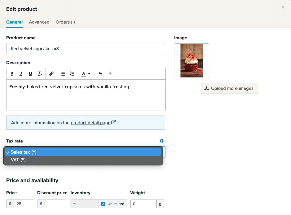 Du kan angi flere avgiftssatser for produkter i din nettbutikk. Dette inkluderer omsetningsavgift og merverdiavgift.