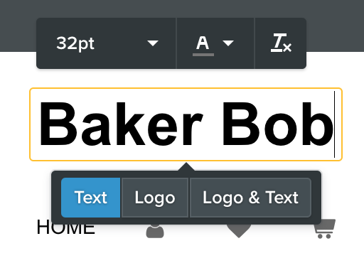- Logo og tekst: Bruk både tekst og et bilde. Dobbeltklikk for å laste opp et bilde og skriv inn teksten du vil plassere øverst på nettsiden din.