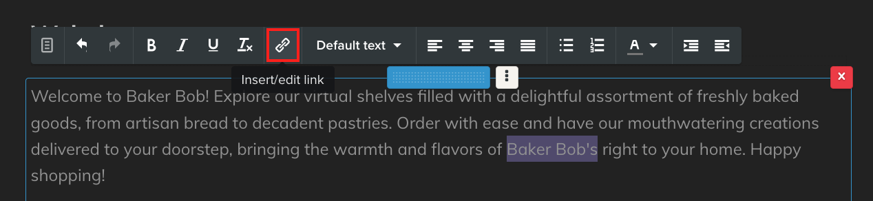 Når teksten er valgt, klikker du på koblingsikonet i den grå verktøylinjen.