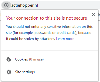 Du mottar dette varselet fordi nettsiden bruker bilder, skript eller iframes med usikre tilkoblinger. Det grønne hengelåsikonet vises først når disse er korrigert. Nødvendige justeringer avhenger av omstendighetene, så du må kontrollere dette selv.