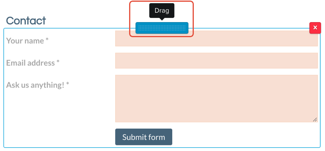 Hold musepekeren over et element, klikk og hold på det blå rektangelet og dra elementet for å endre posisjonen.