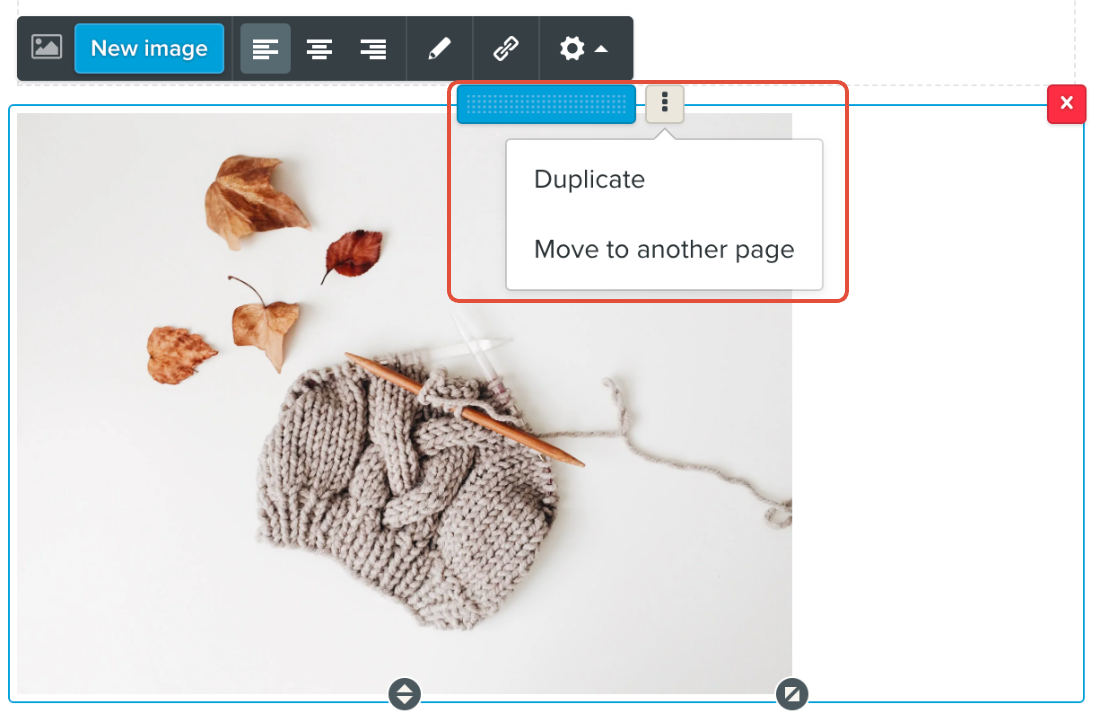 Du kan flytte et element til en annen side. Dette er nyttig hvis du for eksempel har lagt til et element på feil side. Du kan også duplisere et element og deretter legge det til på én eller flere andre sider.