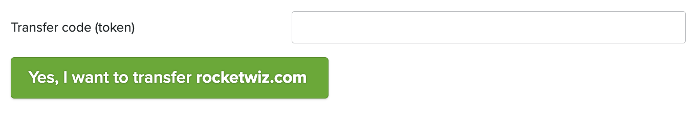 Skriv inn overføringskoden (EPP-kode, token) for domenenavnet ditt i feltet. Du kan be om en overføringskode fra din nåværende leverandør (vanligvis et automatisk valg i kontrollpanelet).