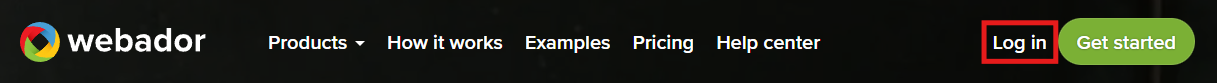 Gå til www.webador.com eller www.webador.co.uk og klikk på Logg inn øverst til høyre.