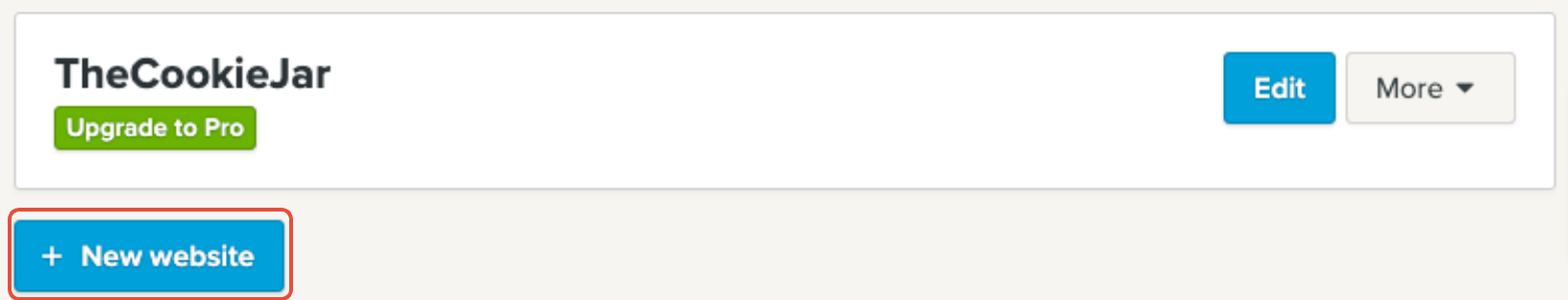 På siden "Mine nettsider", klikk på den blå knappen + Ny nettside.