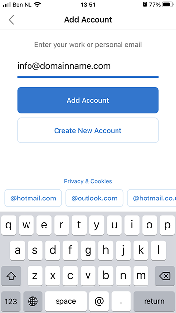 Skriv inn e-postadressen til postboksen din og trykk på Legg til konto.