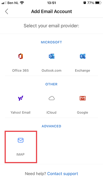 ⚠ Merk: Hvis det du ser på enheten din er annerledes enn skjermbildene i denne artikkelen, bruker du kanskje en annen versjon av appen. Prøv konfigurasjonen ved å bruke generelle e-postinnstillinger.