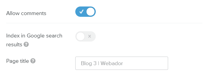 Du kan også angi her om blogginnlegget ditt skal vises i Googles søkeresultater. Dette gjelder også den interne søkefunksjonen på nettsiden din. Hvis du deaktiverer dette valget, vil blogginnlegget ikke bli inkludert i søkeresultater via Google eller den interne søkefunksjonen på nettsiden din.