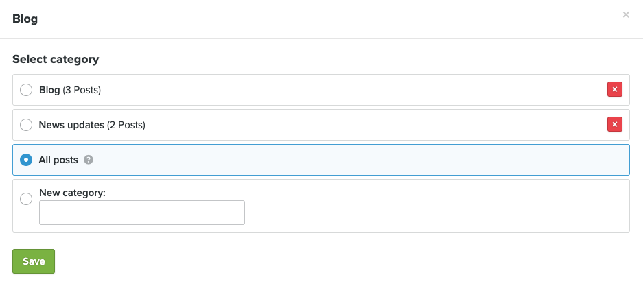 Har du allerede en blogg på nettsiden din? Start med å klikke på knappen Velg kategori for å velge en (ny eller eksisterende) kategori.