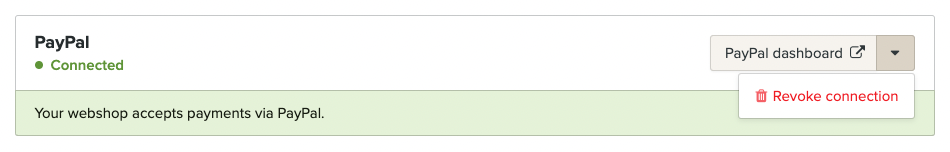 Klikk på Koble til PayPal for å begynne å godta betalinger på Webador.
