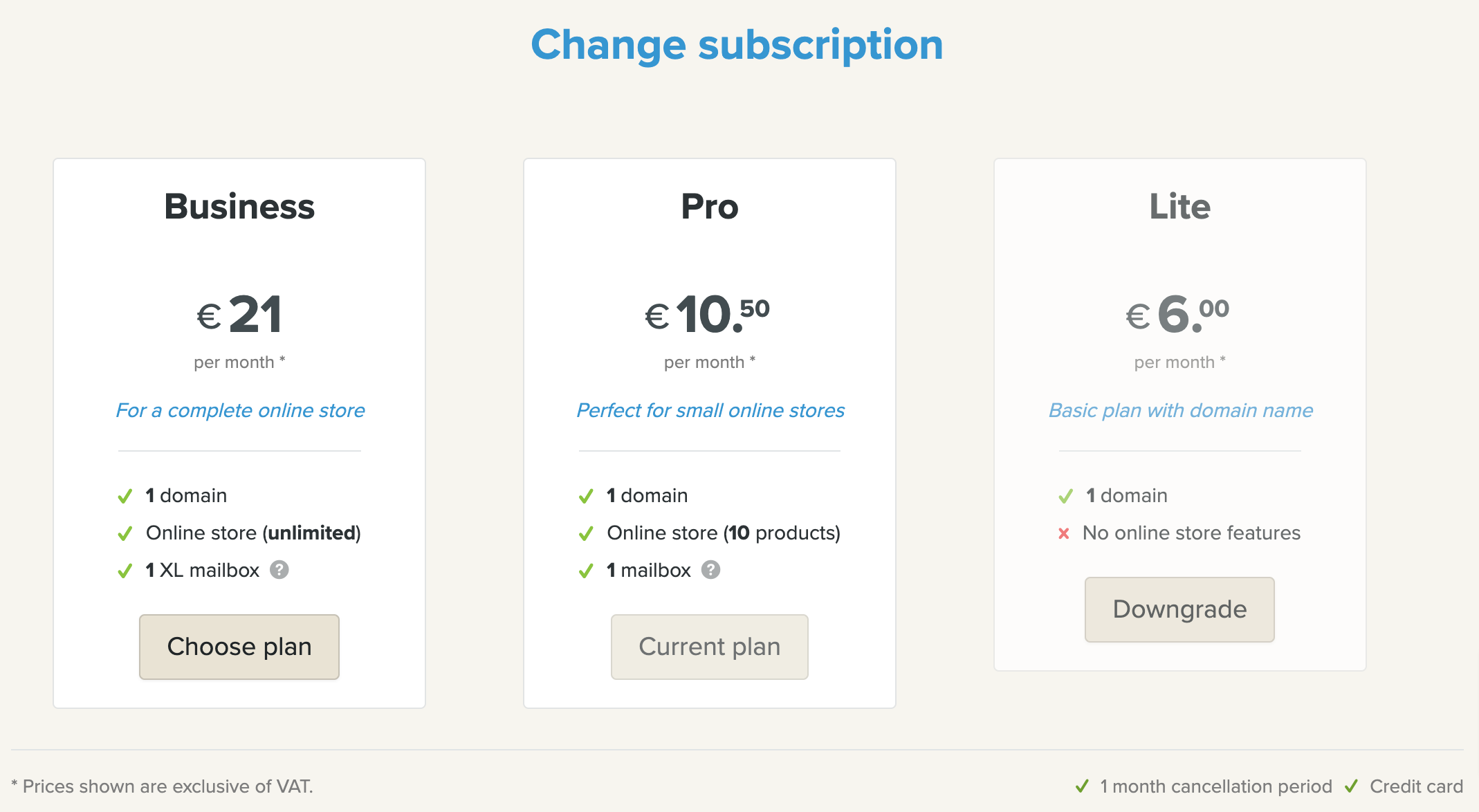 Hvis virksomhetsbehovene dine har endret seg etter en oppgradering til Webador Lite eller Pro, kan du velge å oppgradere til Pro eller Business i stedet. Kanskje du trenger å liste flere produkter i nettbutikken din, laste opp en informasjonsvideo til nettsiden din, eller kanskje du trenger mer plass i postkassen. Det er alltid mulig!