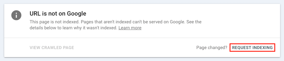 ⚠ Merk: Innsending av denne forespørselen garanterer ikke at siden blir indeksert. En forespørsel sendes til Google som indikerer at du ønsker at siden skal bli funnet og indeksert med prioritet.
