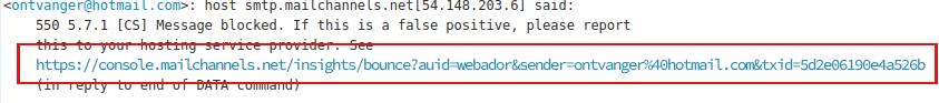 Du kan motta dette automatiske svaret etter at du har sendt en e-post. Denne meldingen forteller deg at e-posten din ikke ble sendt til den tiltenkte mottakeren fordi søppelpostfilteret tror det er en søppelpost.