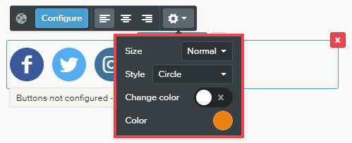 Klikk på elementet og bruk det grå verktøylinjen for å tilpasse dine delingsknapper for sosiale medier: