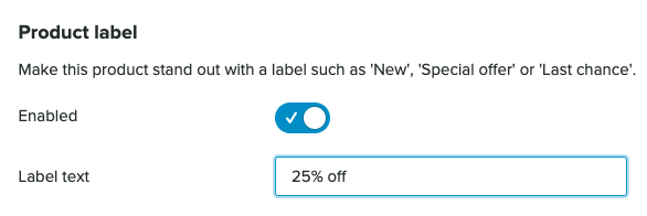 Produktmerker er en flott måte å få enkelte produkter til å skille seg ut i nettbutikken din. Legg til merker som "Ny" eller "25 % rabatt", og disse vil vises med produktene dine i Produktelementet, Produktgallerielementet, på produktdetaljsiden og i produktlisten i nettbutikken.