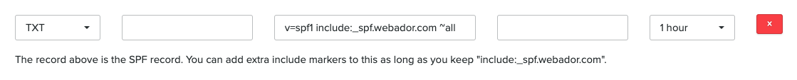 Selv om det ikke er mulig å slette den eksisterende SPF-posten fra Webador, kan du utvide den i dine DNS-innstillinger!