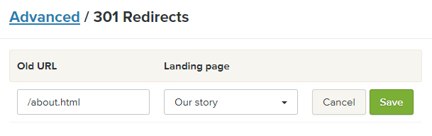 Możesz używać przekierowań (znanych również jako przekierowania 301), aby połączyć stary adres URL z nowym adresem URL. Jest to przydatne, jeśli zastąpisz stronę i chcesz, aby odwiedzający trafiali na nową stronę po wpisaniu starego adresu URL.