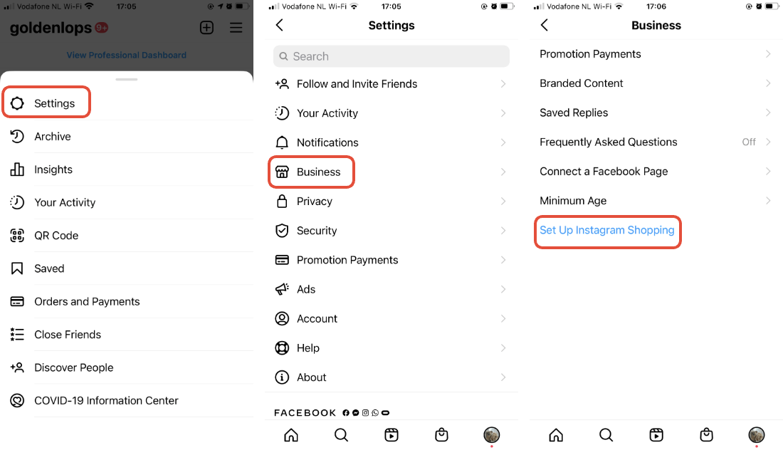 Poproś o zatwierdzenie swojego konta biznesowego na Facebooku. Jeśli spełniasz wymagania, opcja sklepu pojawi się automatycznie w ustawieniach Instagrama.
